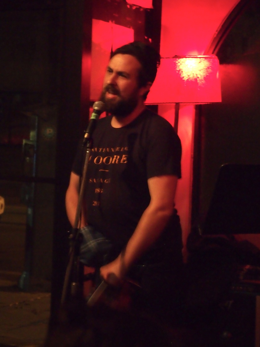 Nathaniel G. Moore (photo by Phoebe Wang)The penultimate reader and the only one to be sharing fiction was Nathaniel G. Moore. His work has appeared in several issues of The Puritan and last week saw the launch party for his novel Savage: 1986-2011 published by Anvil Press. Before I even discuss his reading in detail, let me say this: if you ever have a chance to hear Moore read, go. Sure he’s talented, and the fact that he’s published five books speaks to that, but he’s also absolutely hilarious. At one point he complained about being too warm so he took off his flannel and lo-and-behold, there was a shameless self-promoting t-shirt underneath. Why don’t more readings have such fun participants? He’s comfortable in front of a crowd, very charismatic, and it doesn’t hurt that he’s also a great writer. Since the evening was filled with poets, he shared two pieces from Let’s Pretend We Never Met, which features the Ancient Roman poet Cattulus, though set in the modern day. His writing has a cinematic quality, as though his stanzas are structured like close-ups. In “New, Tall, Elegant Rich Kids” there’s a woman “speaking through the film of her lip gloss” and his diction transforms something as simple as speech into a more sultry, gritty, even sinister moment. Moore then read from Savage: 1986-2011 and chose a section where the narrator writes a letter to his friend, encouraging him to run for student council together. Among the bright ideas Moore includes “Come to School Naked Day,” “Wednes-Day,” a Food Drive where they would drive over food, and a program that would allow students to bring in cassettes and the council would remix them. Adorably, the letter ends with the slogan: “Don’t be Sour, Vote Mega Powers.” His friend isn’t too keen on the campaign and Moore masterfully portrays the awkward conversation, the slight mannerisms of the dis-interested, and the naïve excitement of the narrator’s “production studio mind thinking of background music.”