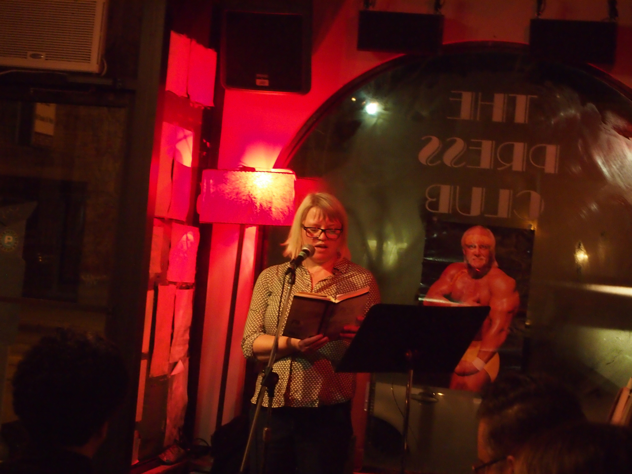 The last Pivot crowd of the season (photo by Phoebe Wang)You know we’re approaching the holidays when you can see your breath in the chilly air, the snow turns into slush, then into ice, and back to slush again, and there’s a huge poster of Hulk Hogan adorning The Press Club’s frosty front window. On Wednesday, November 27th I attended the final Pivot Reading for 2013 and was excited to see the bar as packed as ever, with devotees ready to celebrate the end of a great year for the series.