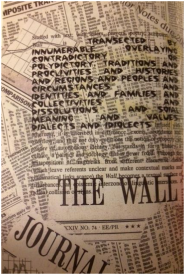 “The Wall becomes a fluid linguistic structure of inbuilt community, a Babel cut through and saturated with micronarratives of both grief and celebration that form a fluid archive between the gaps of stone and mortar.”