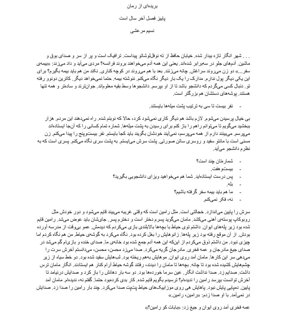 An Excerpt from Fall Is the Last Season of the Year by Nasim Marashi Translated from the Persian by Poupeh Missaghi